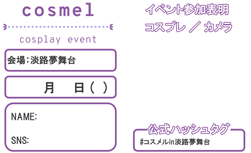 ・その他、コスメルin淡路夢舞台の参加規約に準じます。