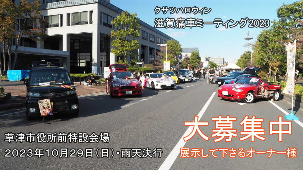 今回は草津市役所前特設会場にて滋賀痛車ミーティング2023を開催します!!